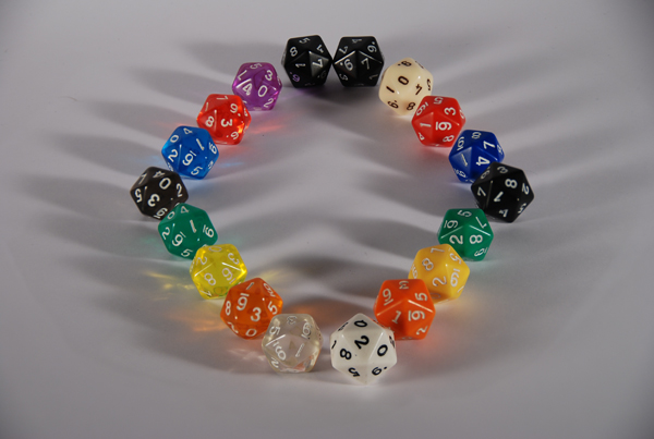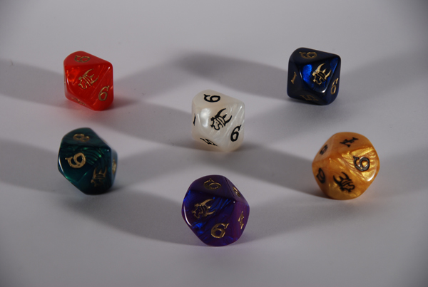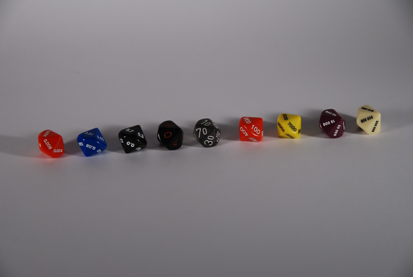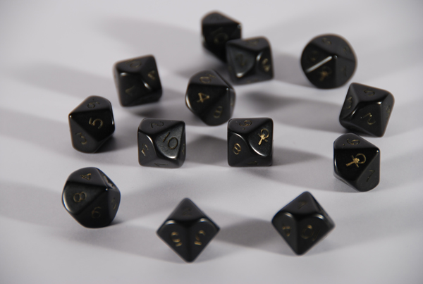 - Mes dés préféres pour tous les jeux comme Ars Magica ou Agone... ils ont bien 10 faces, mais chacune est présente deux fois!