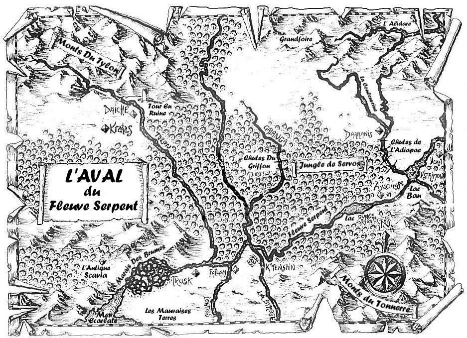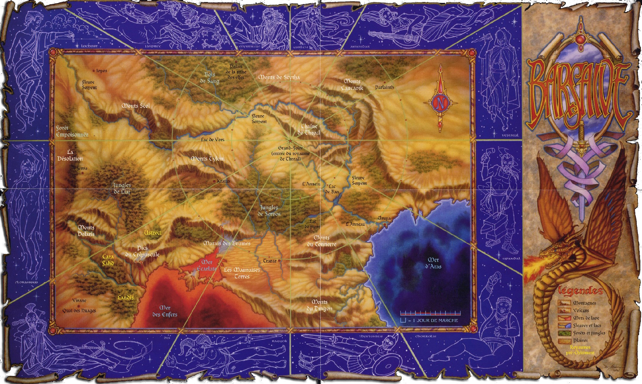 Cette carte est une autre approche moins orientée vers les routes mais plus vers les choses présentes dans Barsaive, elle a été rédigée par les marins T'Skrang et les gens qui travaillent avec eux.